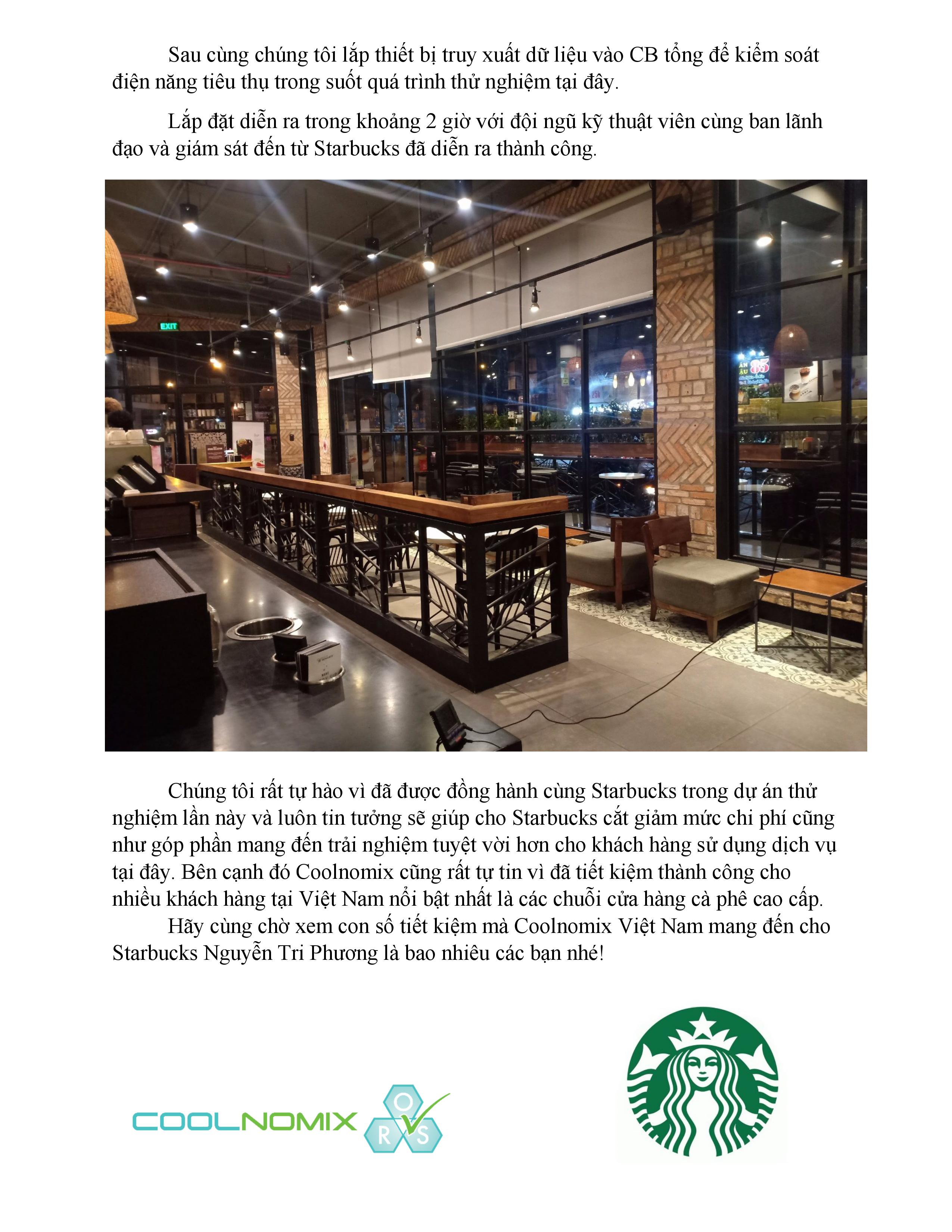Hoàn thành thử nghiệm hiệu quả siêu tiết kiệm tại cửa hàng Starbucks Lakai Quận 5 với con số tiết kiệm trung bình khoảng 8 triệu đồng cho mỗi tháng.